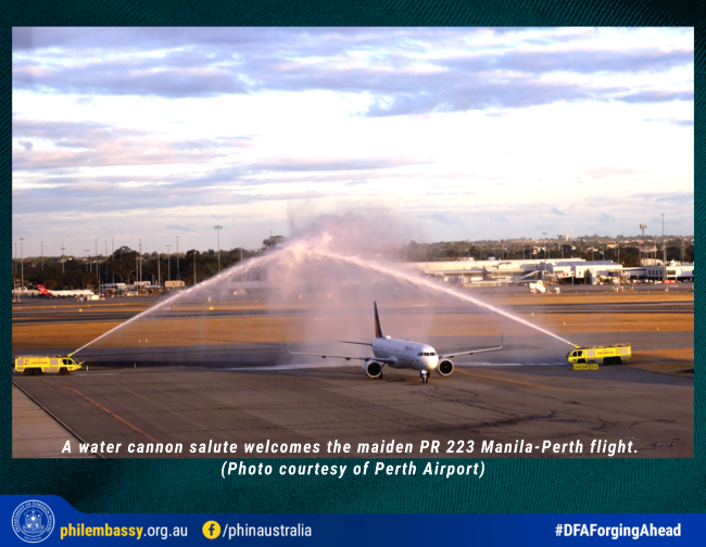 Ambassador De La Vega Welcomes Inaugural PAL Flight from Manila to Perth