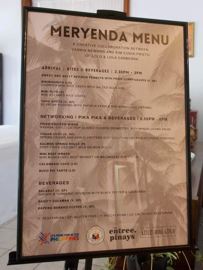 Canberra-based restaurant Lolo and Lola catered a meryenda inspired by recipes from Under Coconut Skies.